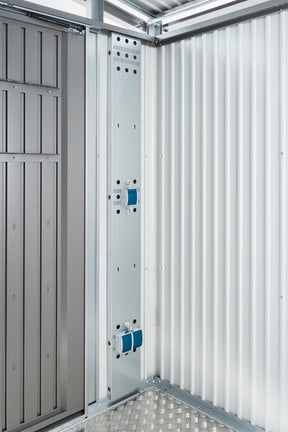 Needed for mounting of sockets as drilling steel voids warranty of shed.