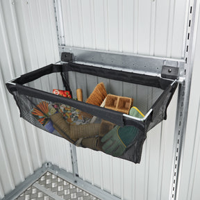 Ideal for storing small objects. Includes wall bracket for hanging on two support rails