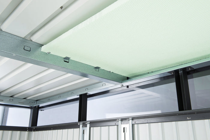 The garden shed Highline is known for its modern flatted roof and timeless industrial design . The integrated all-round window element sets a timeless design and makes it suitable to be installed in any type of garden. The garden shed Highline stands for a durability and quality.