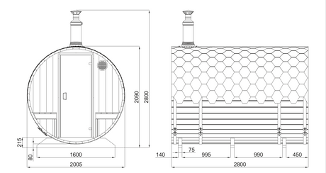 Barrel Sauna 2m Length 4 Person Outdoor Sauna